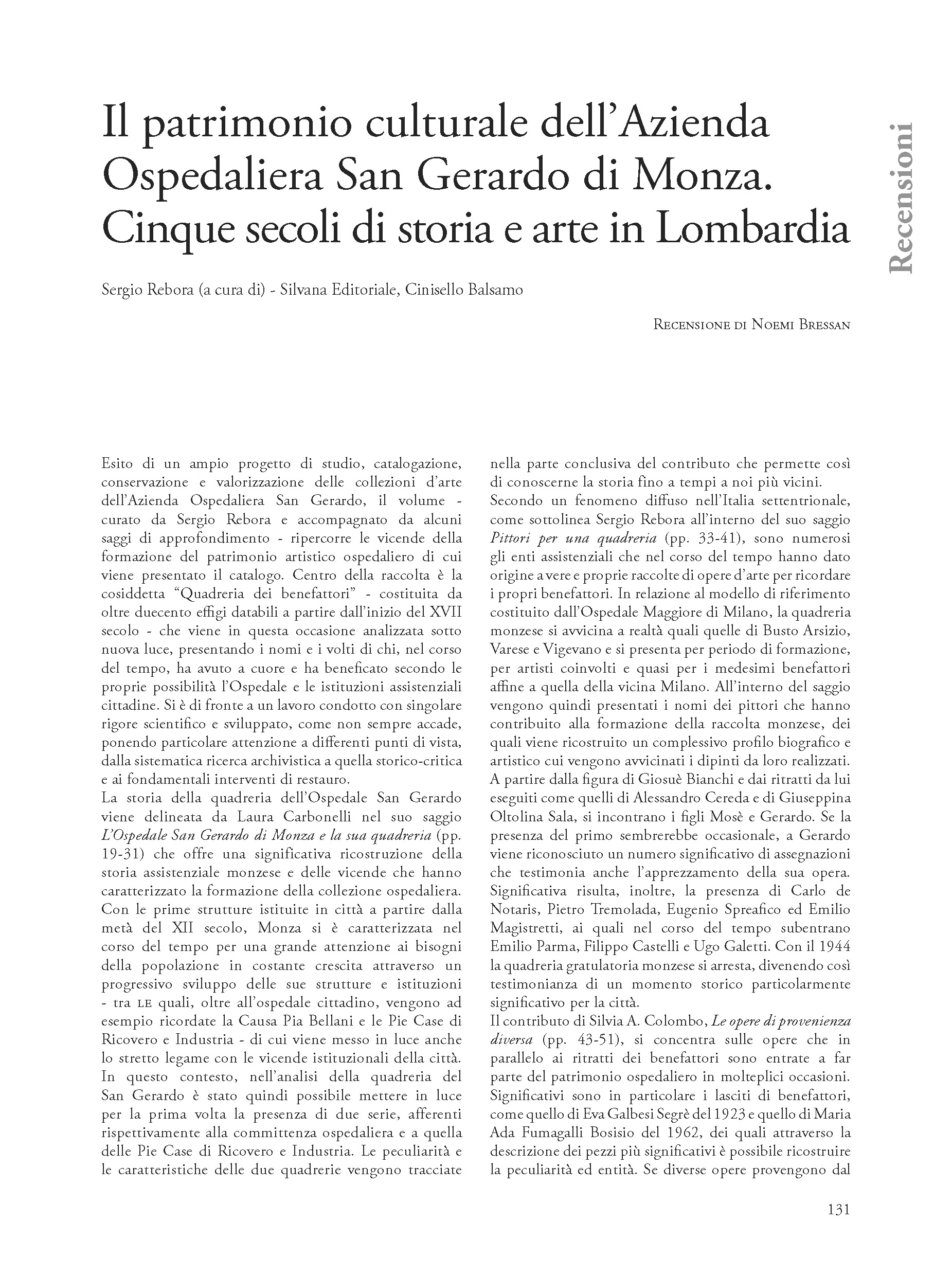 Il patrimonio culturale dell’azienda ospedaliera San Gerardo