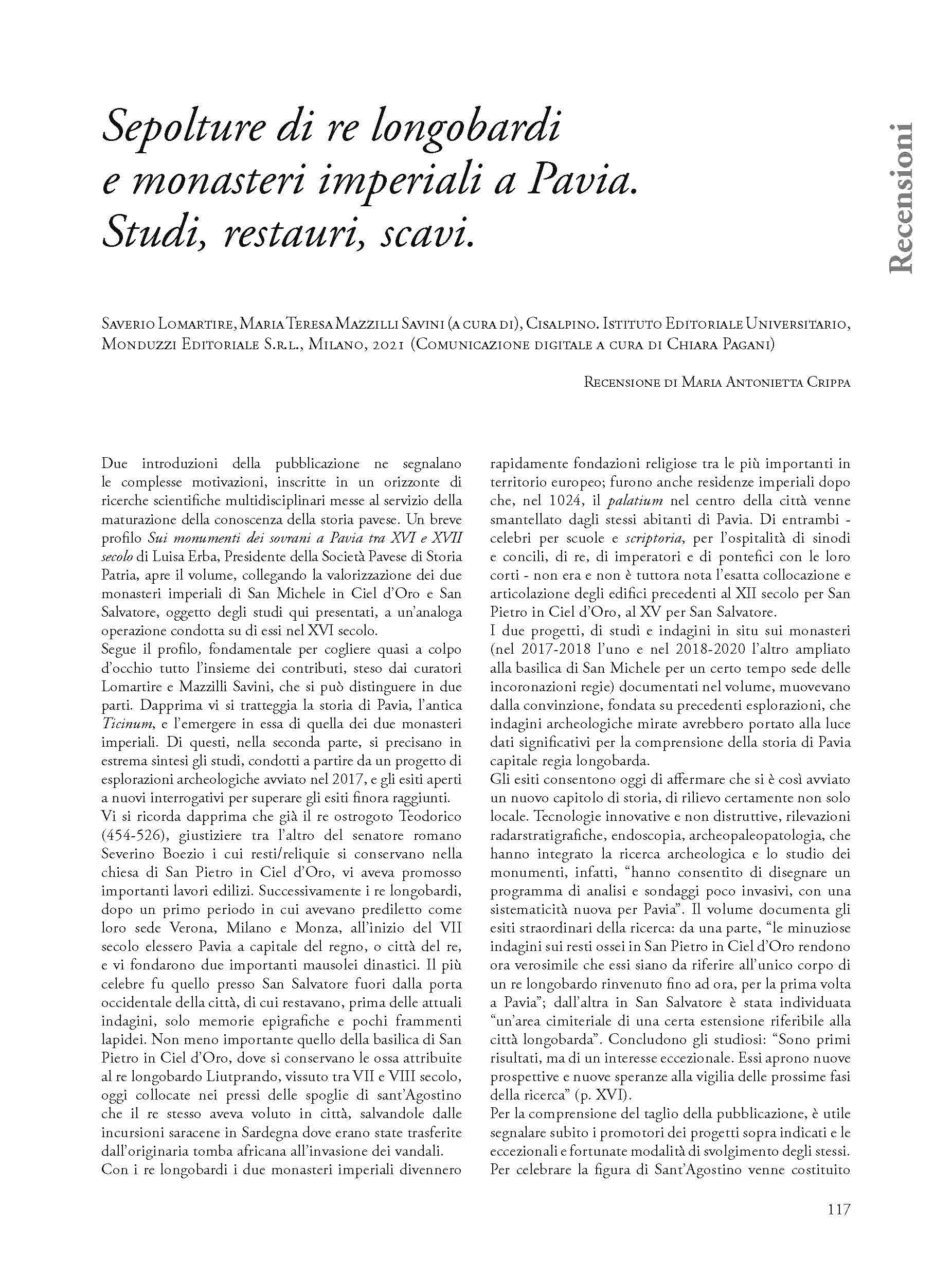 Sepolture di re longobardi e monasteri imperiali a Pavia. Studi, restauri, scavi.