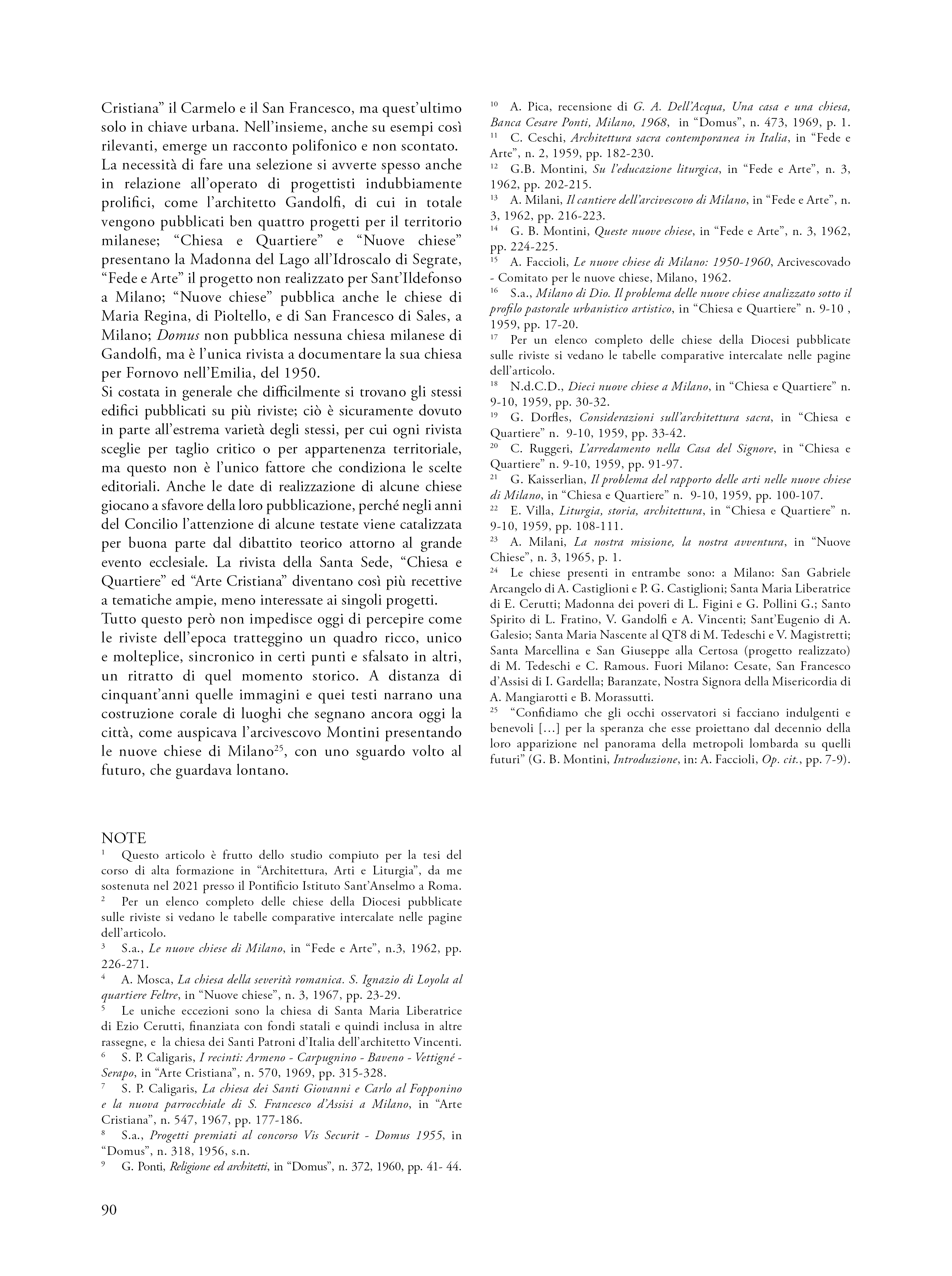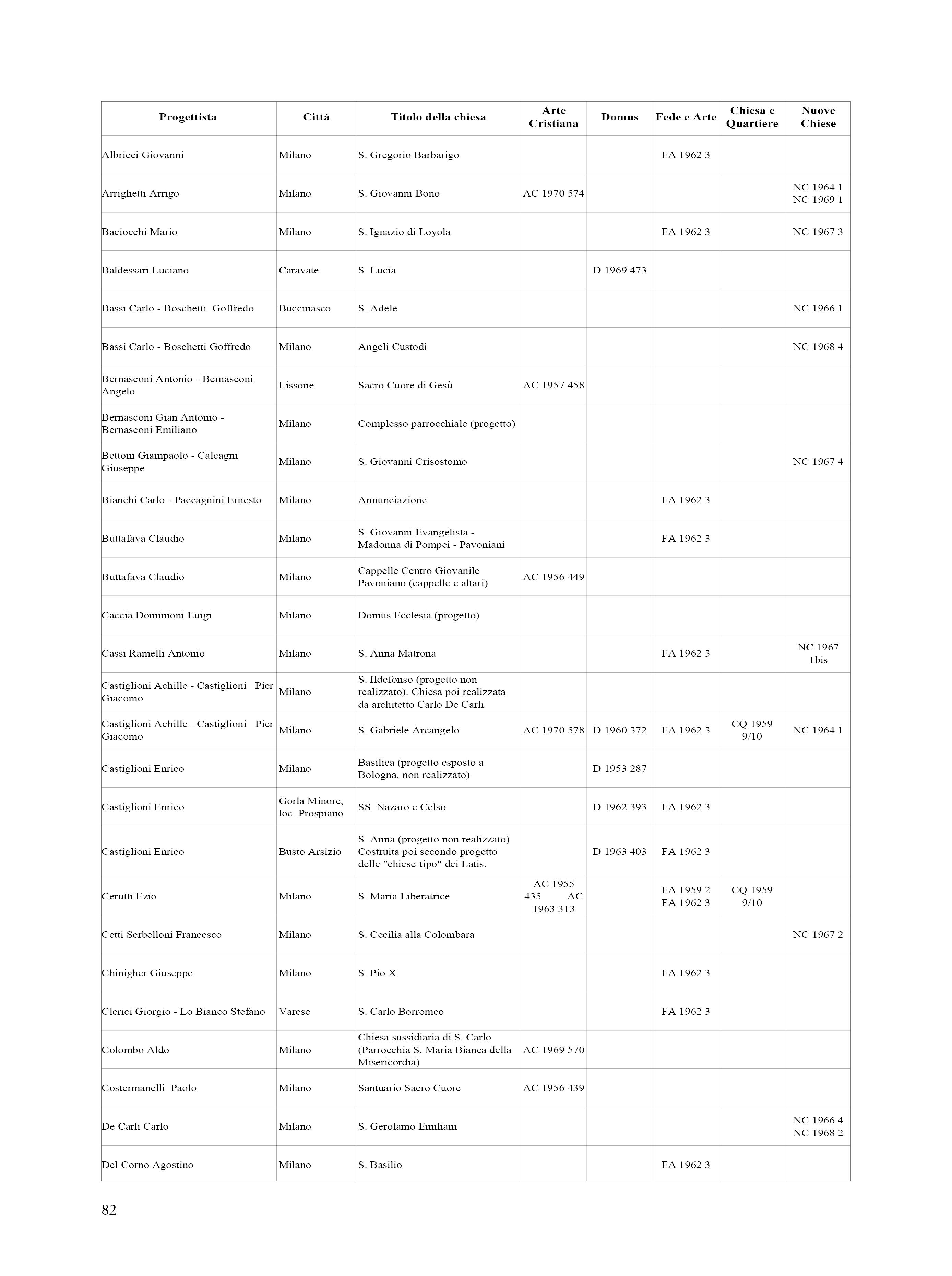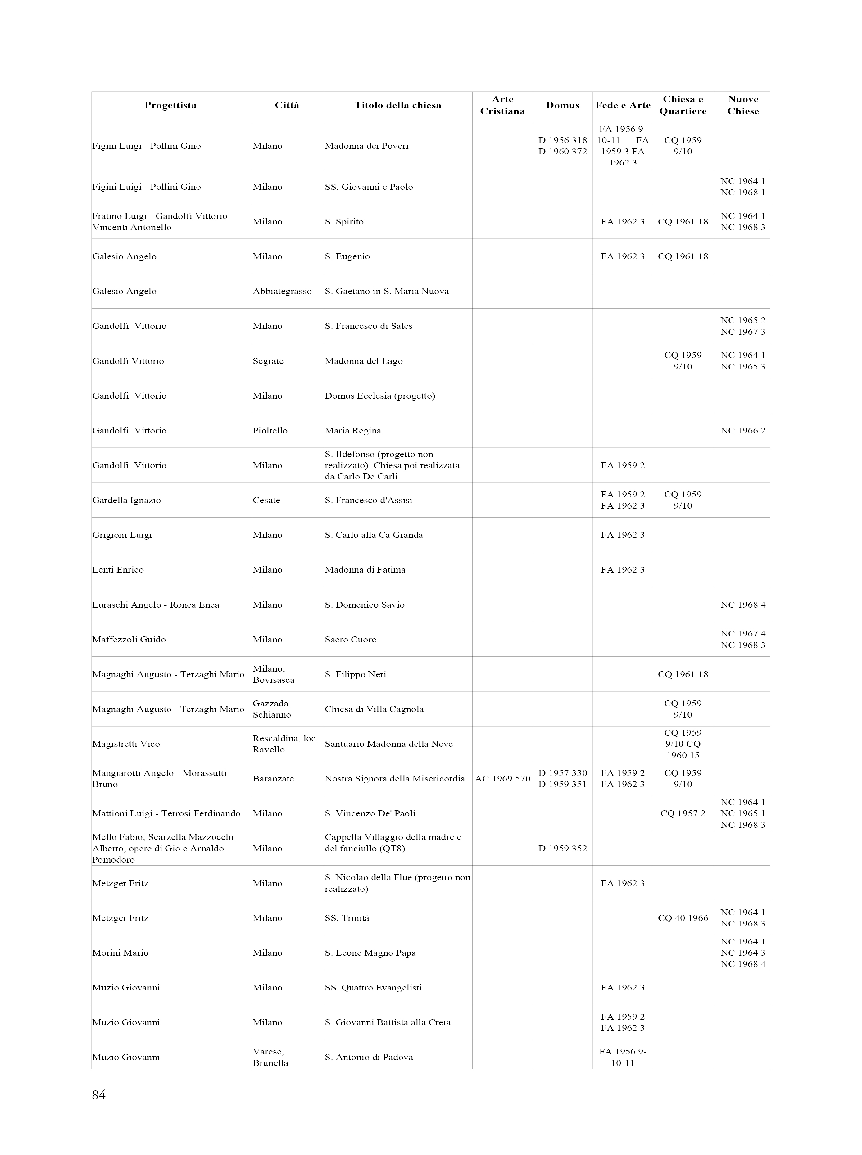 The author, starting from the examination of five specialist magazines analyzed over the course of twenty-five years (1945-1970), intends to highlight the nature and reasons for the interest in the new parish churches, numerous in those years in the Ambrosian diocese. To this end, she investigates “Domus” and “Arte cristiana” throughout the period; for more limited time periods “Fede e Arte”, “Chiesa e Quartiere” and “Nuove chiese”. The investigation allows her to collect and compare descriptive information and critical notes for approximately eighty cases. You draw a very rich documentary picture from it, with insights into the construction of the modern city and the pastoral, social and architectural vitality of Milan. In it, the period of Cardinal Montini’s episcopate emerges above all. Finally, she probes the reasons for the predilection and ways of illustrating the churches in the various magazines, identifying for ideas, worthy of further investigation, both editorial reasons and options strictly connected to the historical moment.
