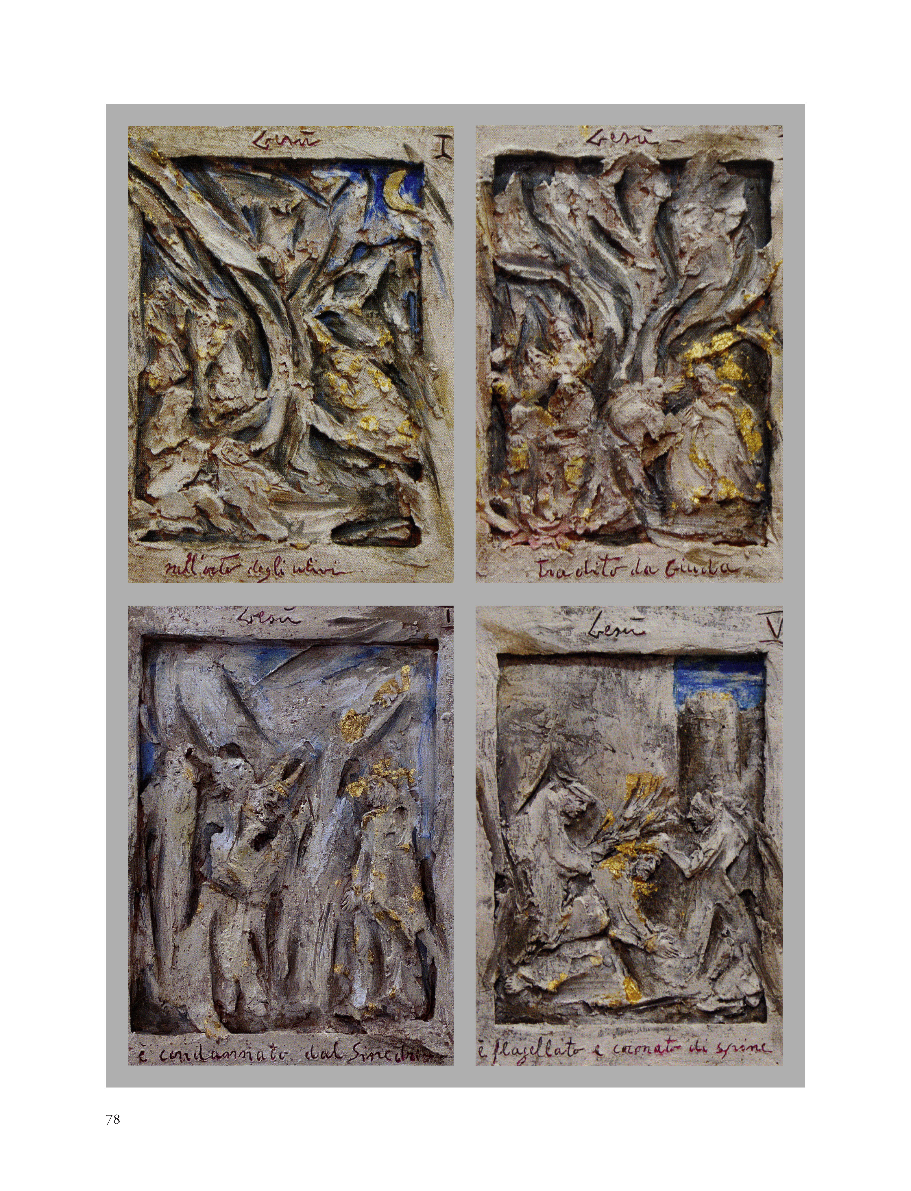 This contribution analyzes the sculptural work of the Way of the Cross created by the Comacine artist Bruno Gandola for the chapel of the Salesian Oblate Sisters of the Sacred Heart Convent in Ponte a Elsa (PI). Resulting from an in-depth iconographic and theological study, the work - comprising fifteen glazed terracotta panels - interprets the Passion of Christ through a stylistic synthesis that merges the tradition of medieval incunabula with a contemporary plastic sensibility.The analysis of the panels highlights a vibrant expressive language, in which the material modeling and relief create a strong sense of dynamism in the sacred narrative. Created in 2018 and delivered in 2019, Gandola’s Way of the Cross stands out for its emotional and symbolic rendering of details, situating itself within the discourse on contemporary sacred art and emerging as an expression of faith embodied through matter and form.