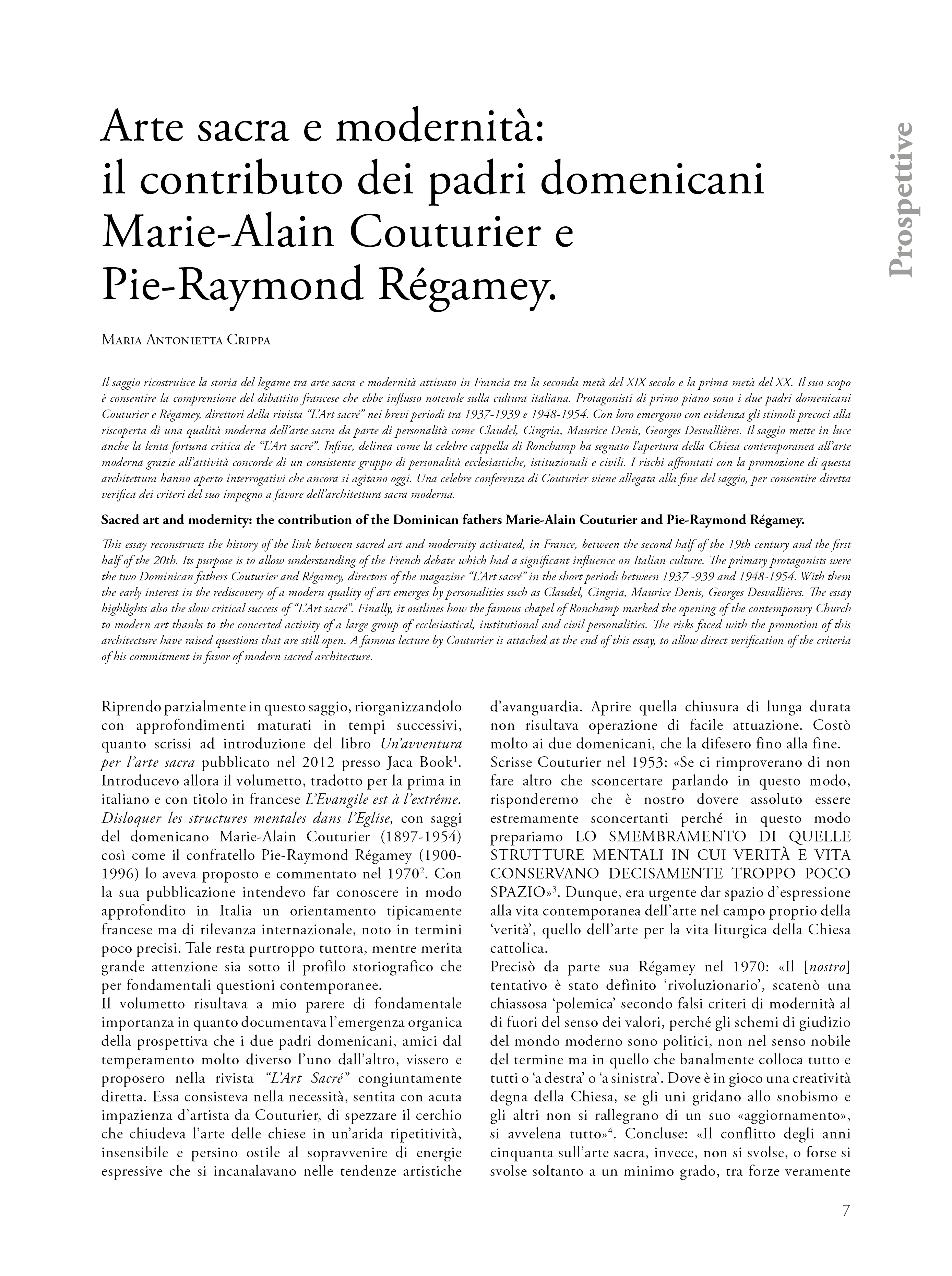 Arte sacra e modernità: il contributo dei padri domenicani Marie-Alain Couturier e Pie-Raymond Régamey.