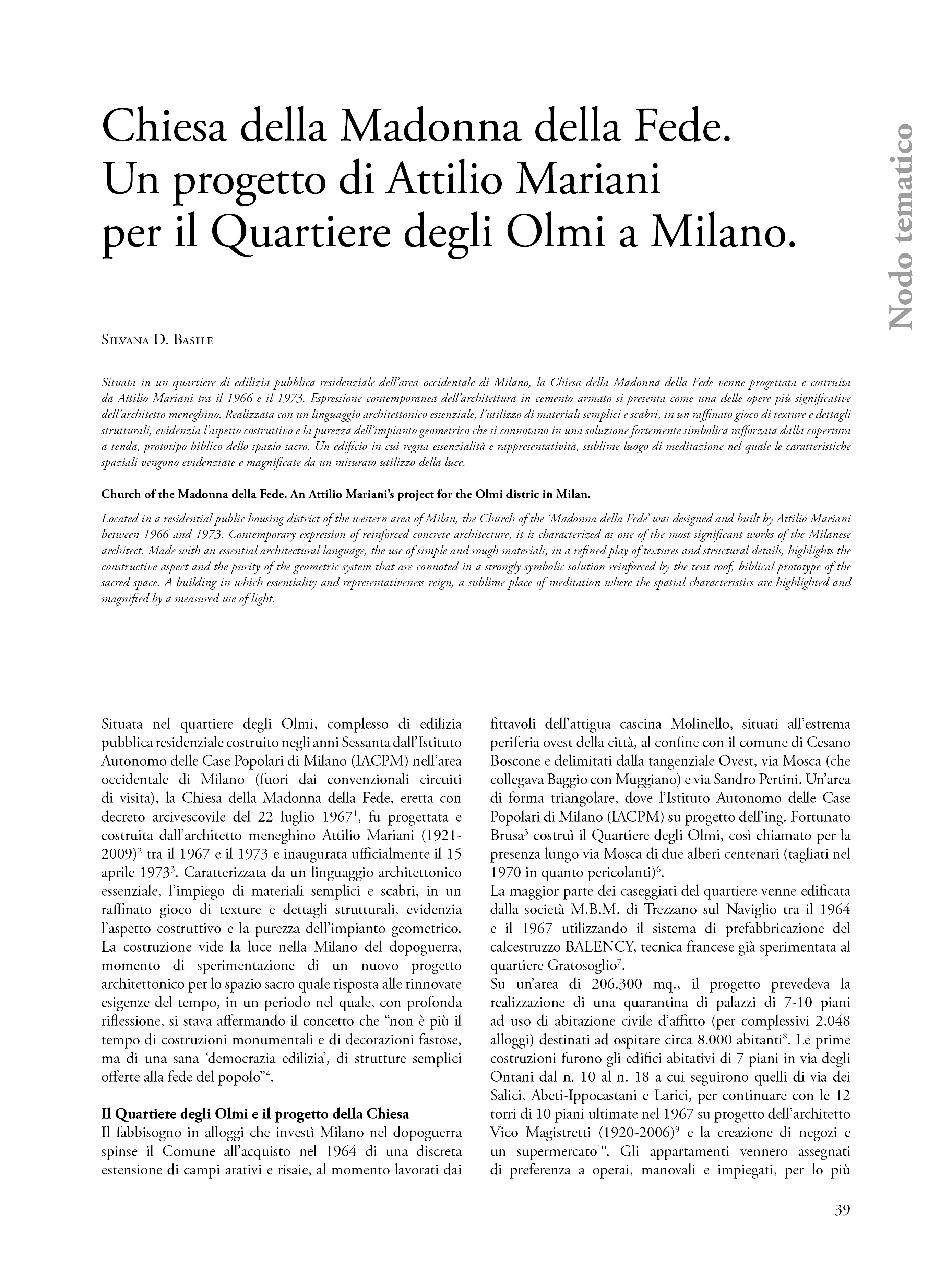 Chiesa della Madonna della Fede. Un progetto di Attilio Mariani per il Quartiere degli Olmi a Milano