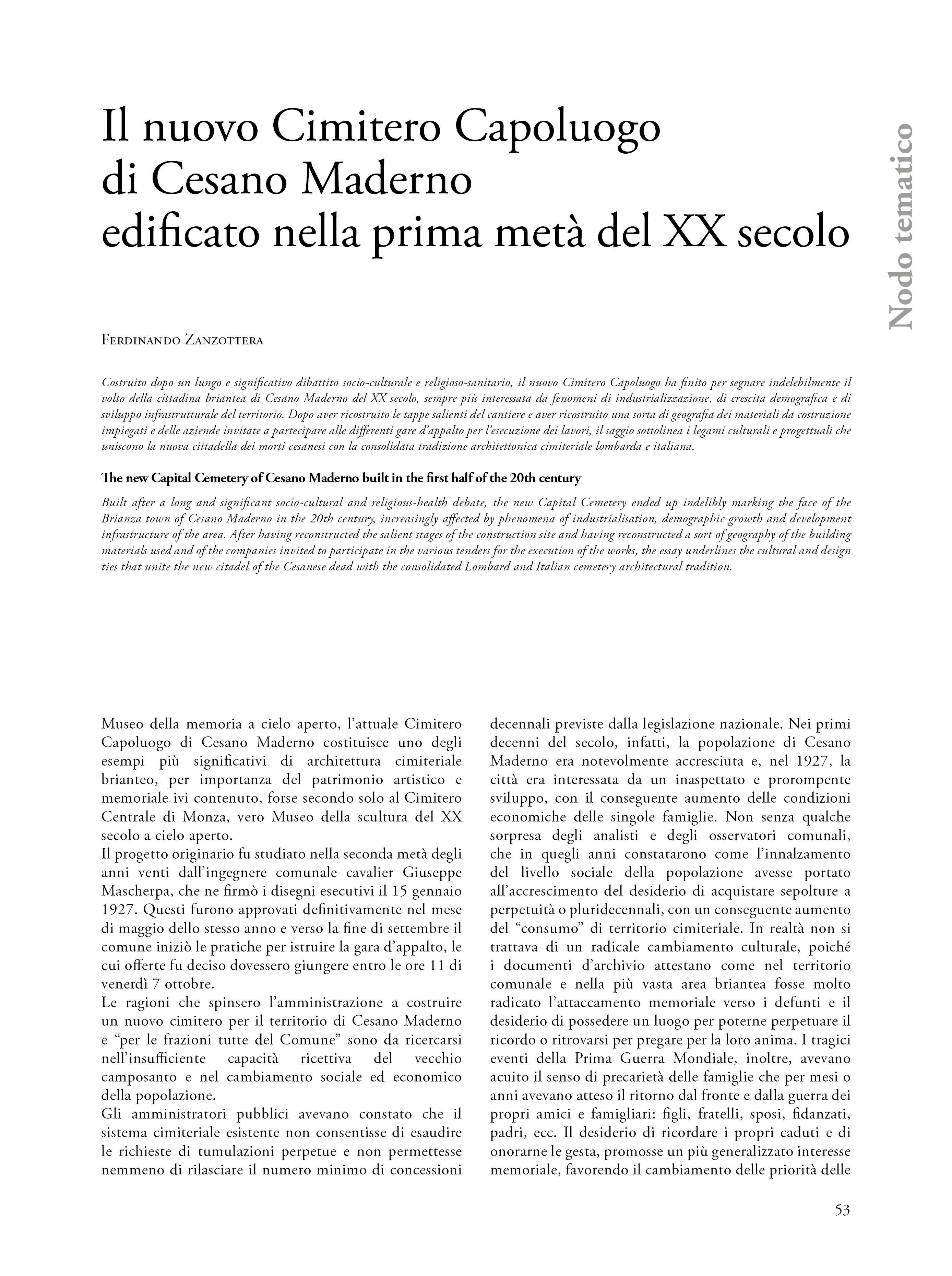 Il nuovo Cimitero Capoluogo di Cesano Maderno edificato nel Novecento