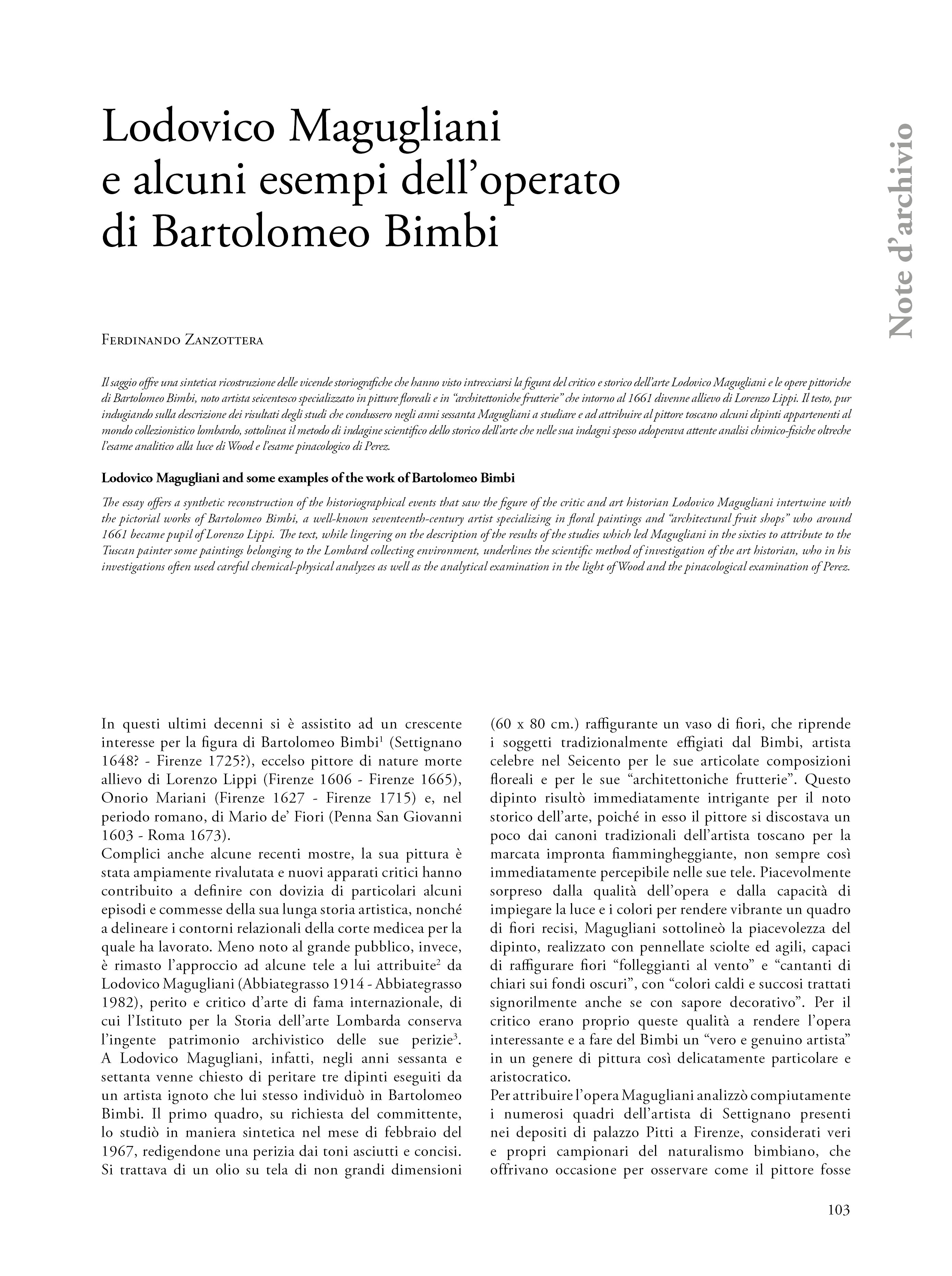 Lodovico Magugliani e alcuni esempi dell’operato di Bartolomeo Bimbi