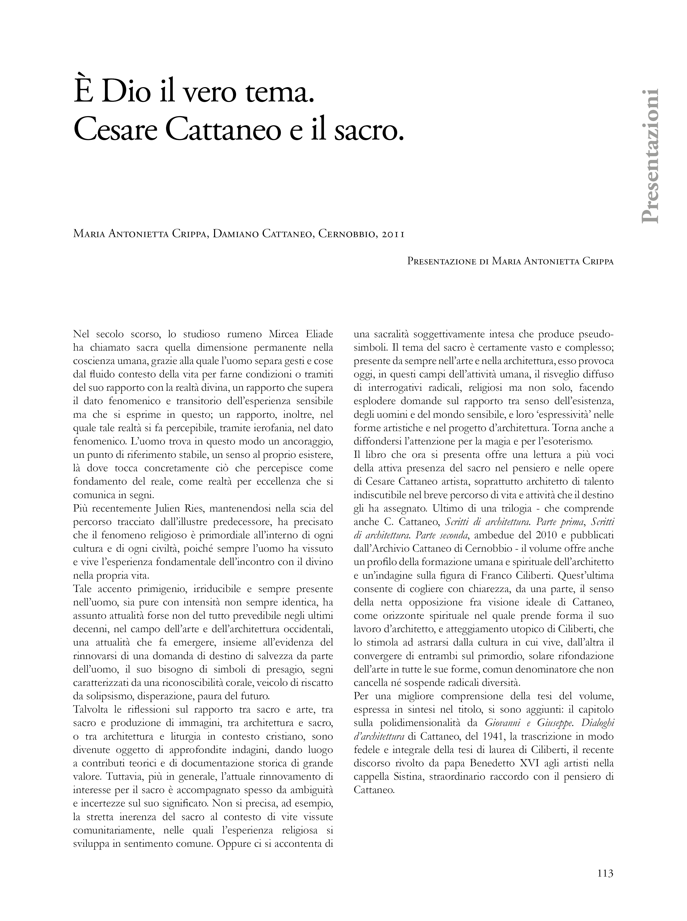 È Dio il vero tema. Cesare Cattaneo e il sacro.